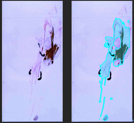 - 진한 염색의 경우: FocusON 영역에 둘러싸인 닫힌 공간이면서, 다른 라벨(예: Bubble)이 아닌 경우에 FocusOFF로 처리합니다. 진한 염색 조직에서는 FocusOFF 기준을 타이트하게(엄격하게) 적용합니다.